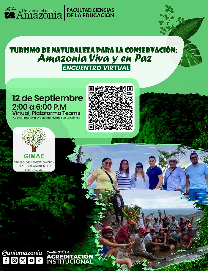 Este evento, organizado por el Grupo de Investigación en Medio Ambiente y Educación (GIMAE), ofrece una oportunidad única para profundizar en el turismo de naturaleza como una herramienta poderosa para la conservación y la paz en la Amazonia.