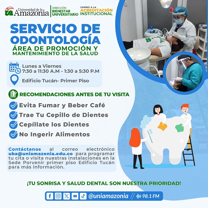 Nuestro Servicio de Odontología está disponible todos los días en la sede Porvenir. ¡Estamos listos para cuidar de tu sonrisa con dedicación y profesionalismo!