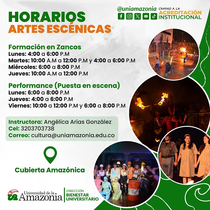 La Universidad de la Amazonia invita a toda su comunidad académica a participar de procesos de formación o grupos representativos en Artes Escénicas - Zancos y Performance.