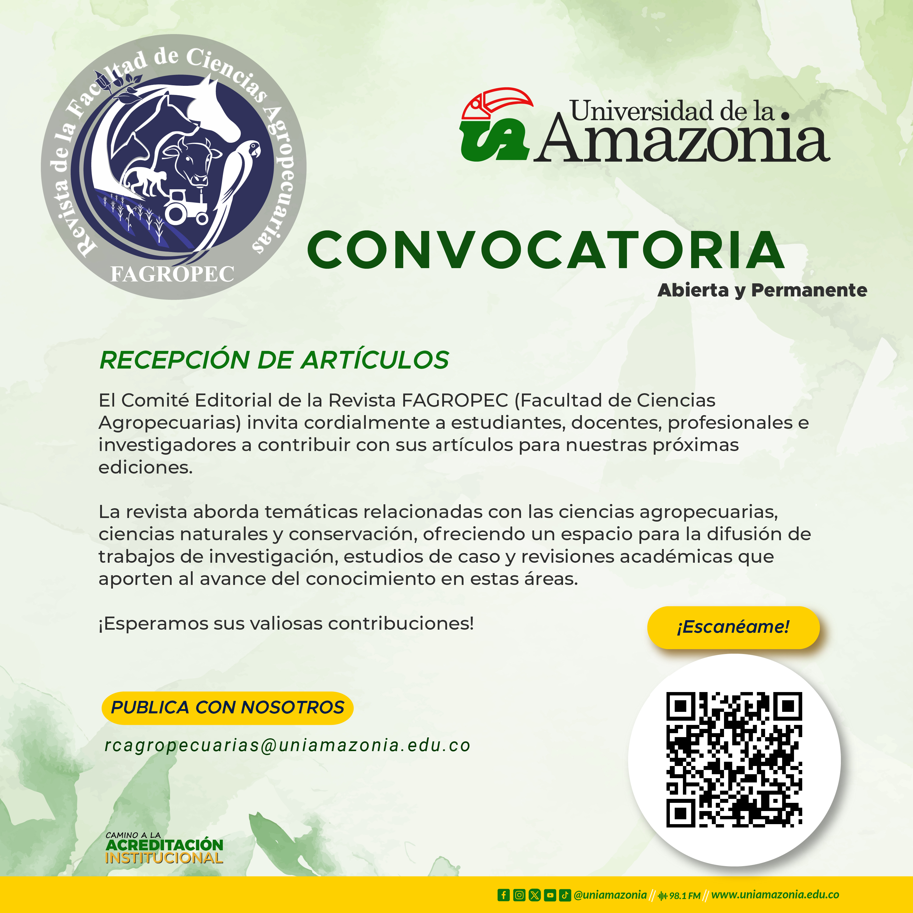 Si trabajas en temas de ciencias agropecuarias, conservación y ciencias naturales, este es tu espacio para compartir conocimiento. ¡Esperamos tu contribución!