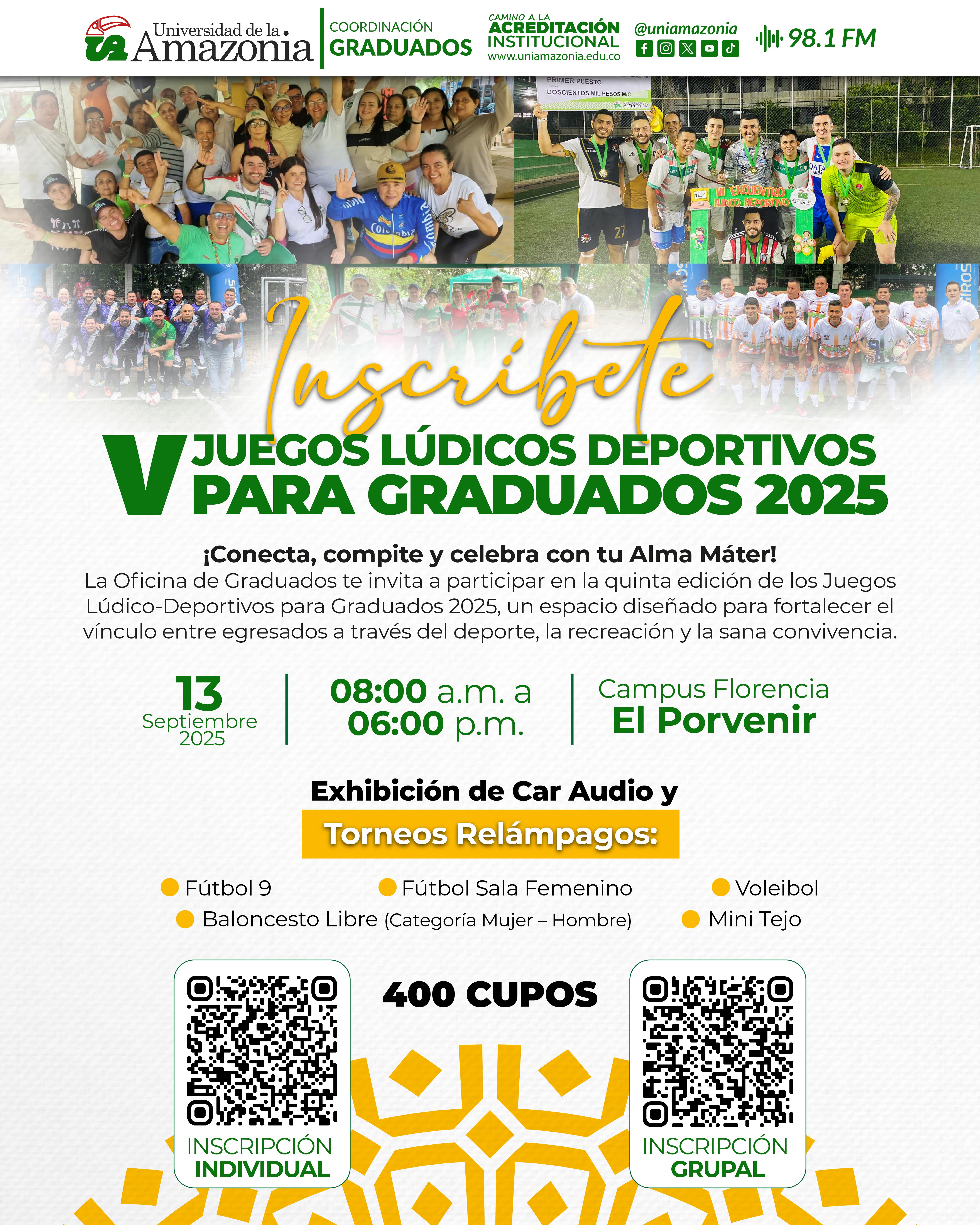 Con gran entusiasmo, anunciamos el regreso de uno de los eventos más esperados por nuestra comunidad: los Juegos Lúdico-Deportivos para Graduados 2025. Una oportunidad única para reencontrarnos, compartir experiencias, revivir recuerdos y, sobre todo, disfrutar juntos de la alegría del deporte y la sana competencia.