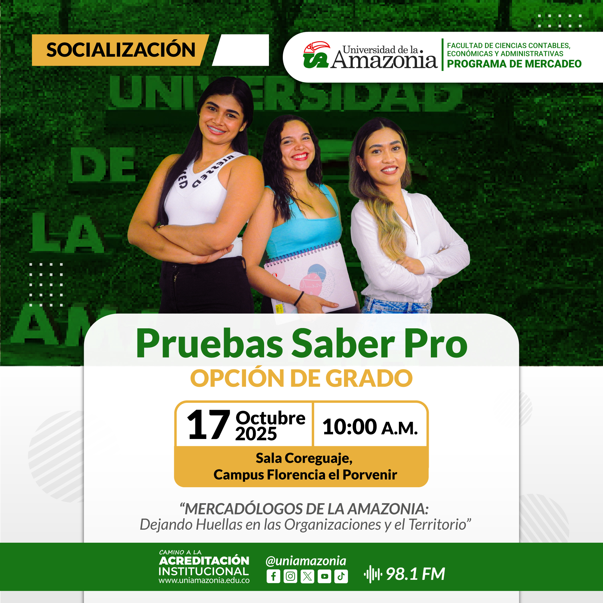 - Lugar: Sala Coreguaje, Campus Florencia, barrio Porvenir.