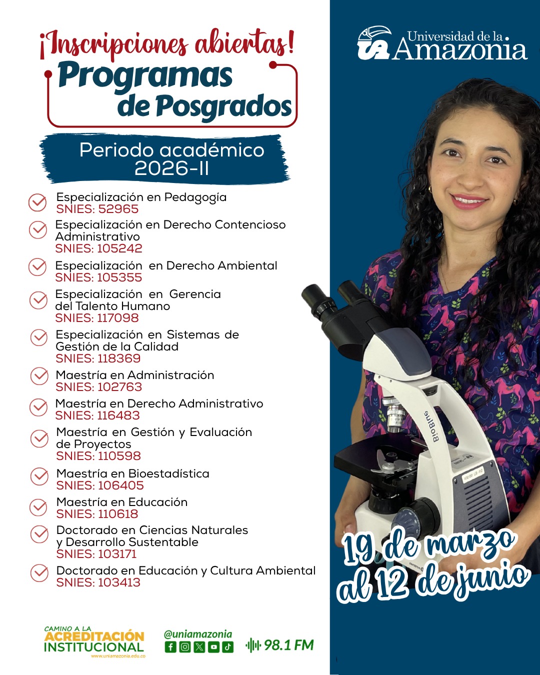 La Universidad de la Amazonia abre convocatoria para pregrados y posgrados