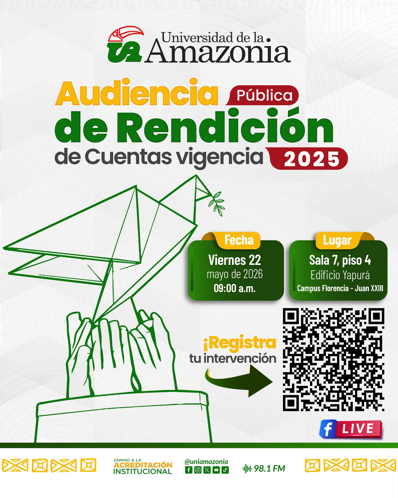 El Rector encargado de la Universidad de la Amazonia, Doctor Fausto Andrés Ortiz Morea, invita a la comunidad universitaria, sector productivo, entes gubernamentales y ciudadanía en general a participar en la Audiencia Pública de Rendición de Cuentas e Informe de Gestión 2025