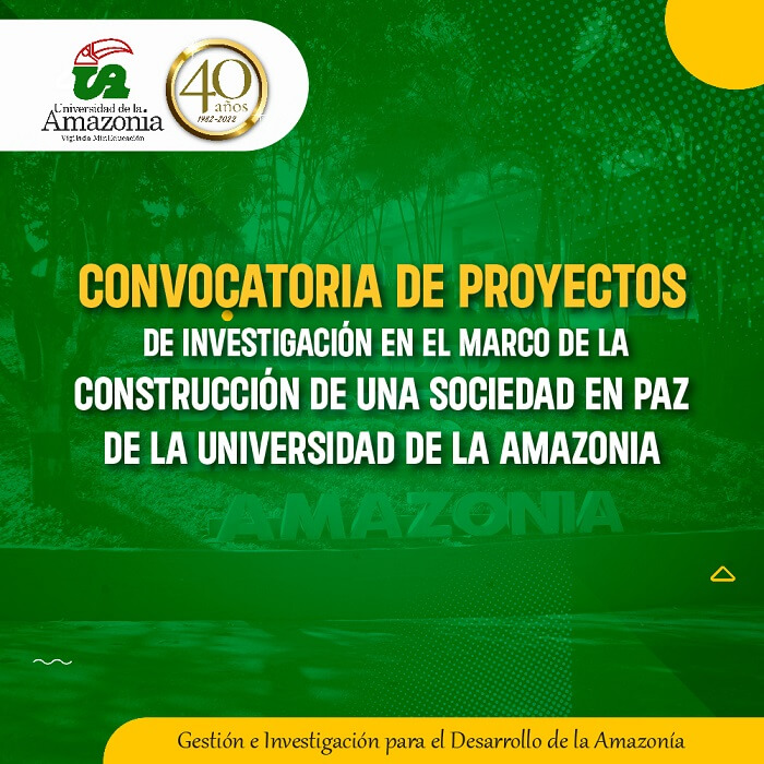 La Vicerrectoría de Investigaciones y Posgrados de la Universidad de la Amazonia, da a conocer la Resolución No. 3529 de 2022 "Por medio de la cual se reglamenta la convocatoria de proyectos de investigación en el marco de la construcción de una sociedad en paz de la Universidad de la Amazonia".