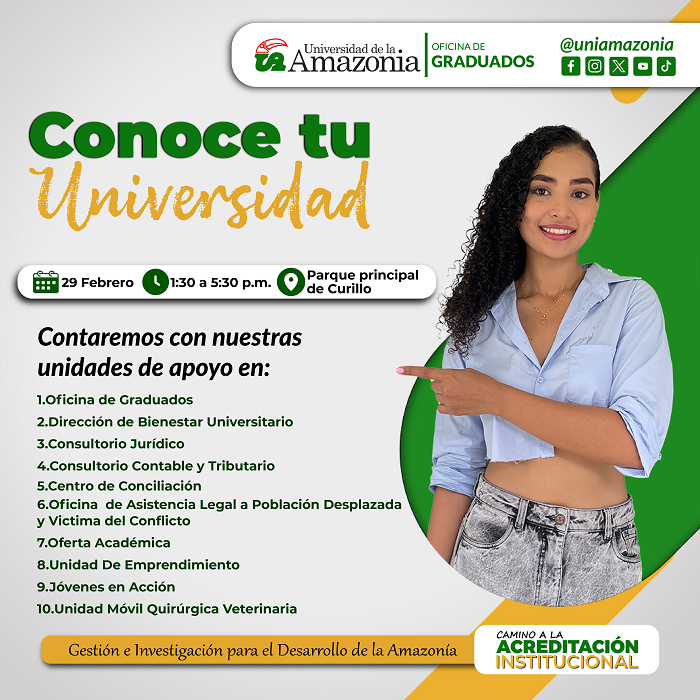 Atención habitantes de Curillo: la Universidad de la Amazonia los invita a participar de las jornadas de #ConoceTuUniversidad el próximo 29 de febrero.