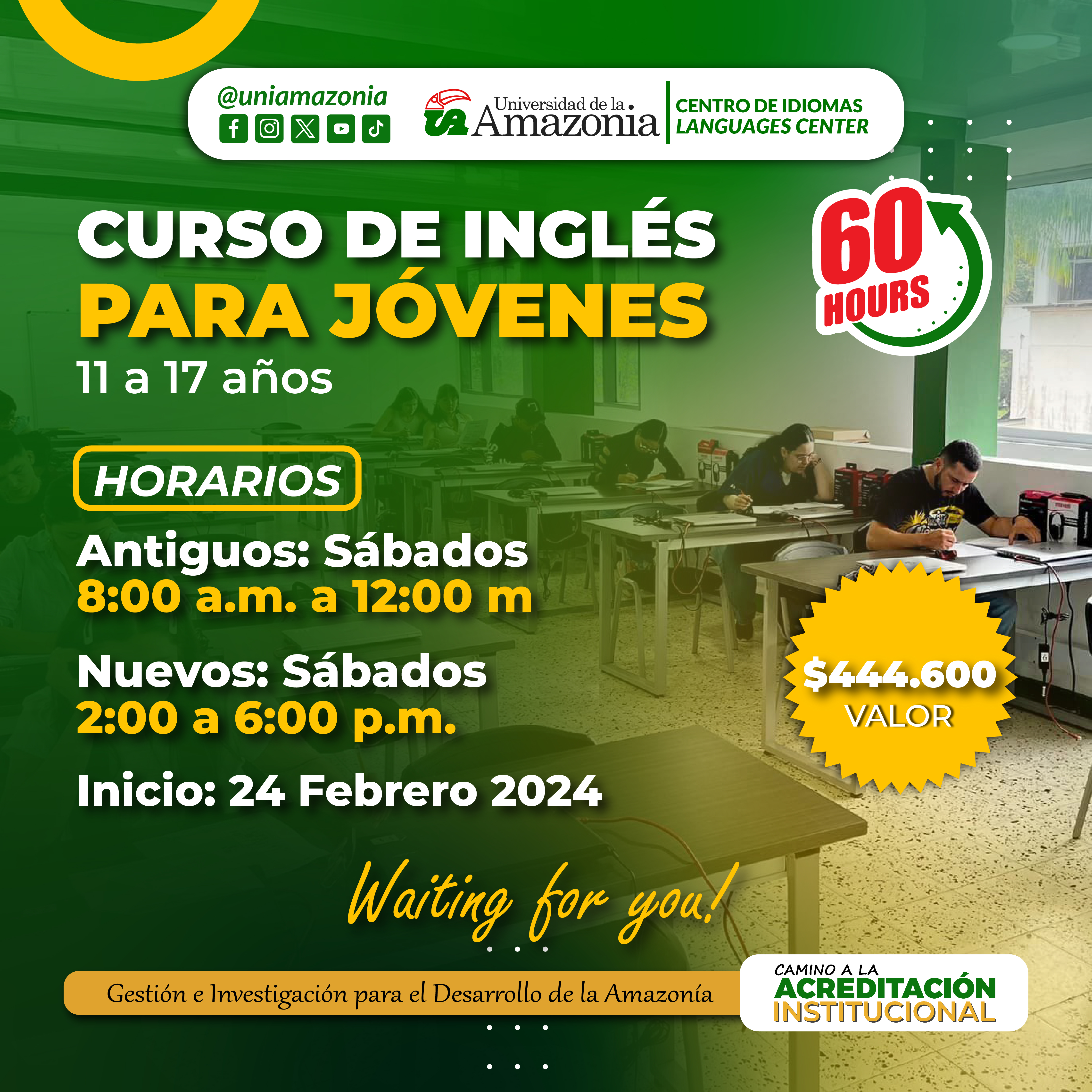 El Centro de Idiomas de la Universidad de la Amazonia informa a la comunidad universitaria las inscripciones al Curso de Inglés como requisito de grado.