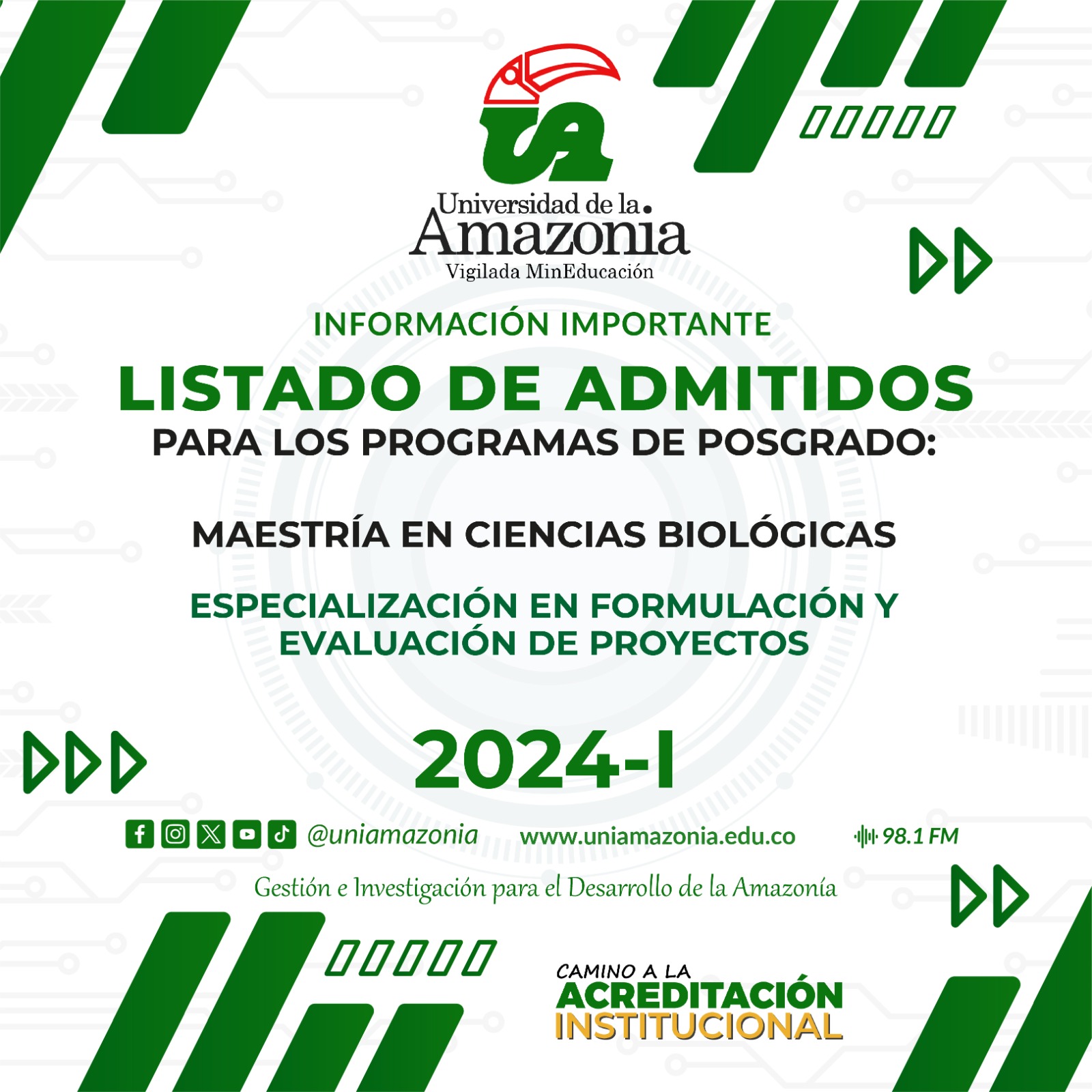 Listados de los aspirantes admitidos para la apertura de la cohorte del programa de posgrados Doctorado Ciencias Naturales Desarrollo Sustentable de la Universidad de la Amazonia, para el periodo 2024-l, donde se apertura para las nuevas inscripciones al programa, según el acuerdo No. 41 (13 de octubre de 2023), "Por el cual se establece el calendario académico parcial para el desarrollo de las actividades correspondientes al primer periodo del año 2024 para la apertura de una cohorte del programa de posgrados Doctorado en Ciencias Naturales y Desarrollo Sustentable".