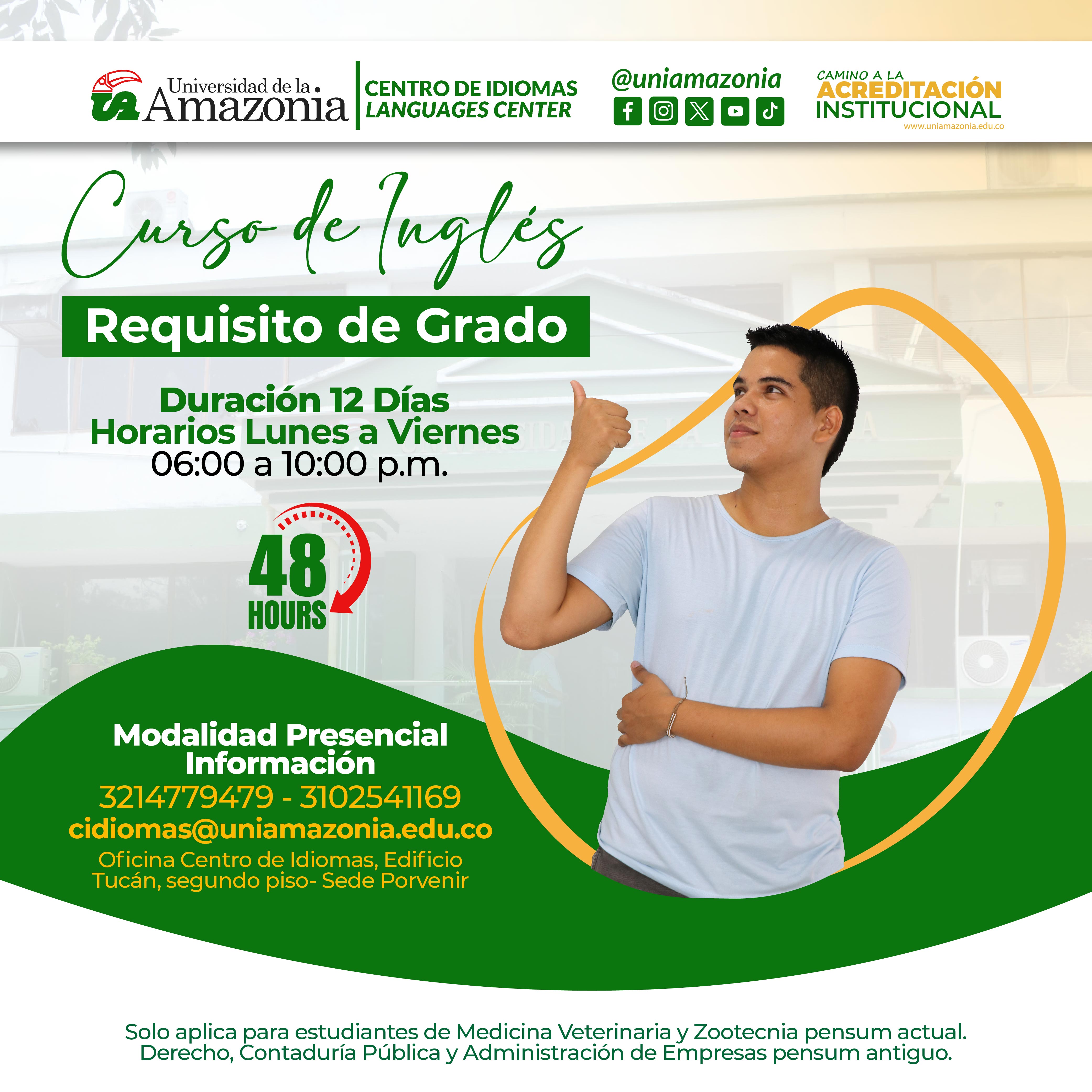 El Centro de Idiomas de la Universidad de la Amazonia informa a la comunidad universitaria de las inscripciones al Curso de Inglés como requisito de grado.