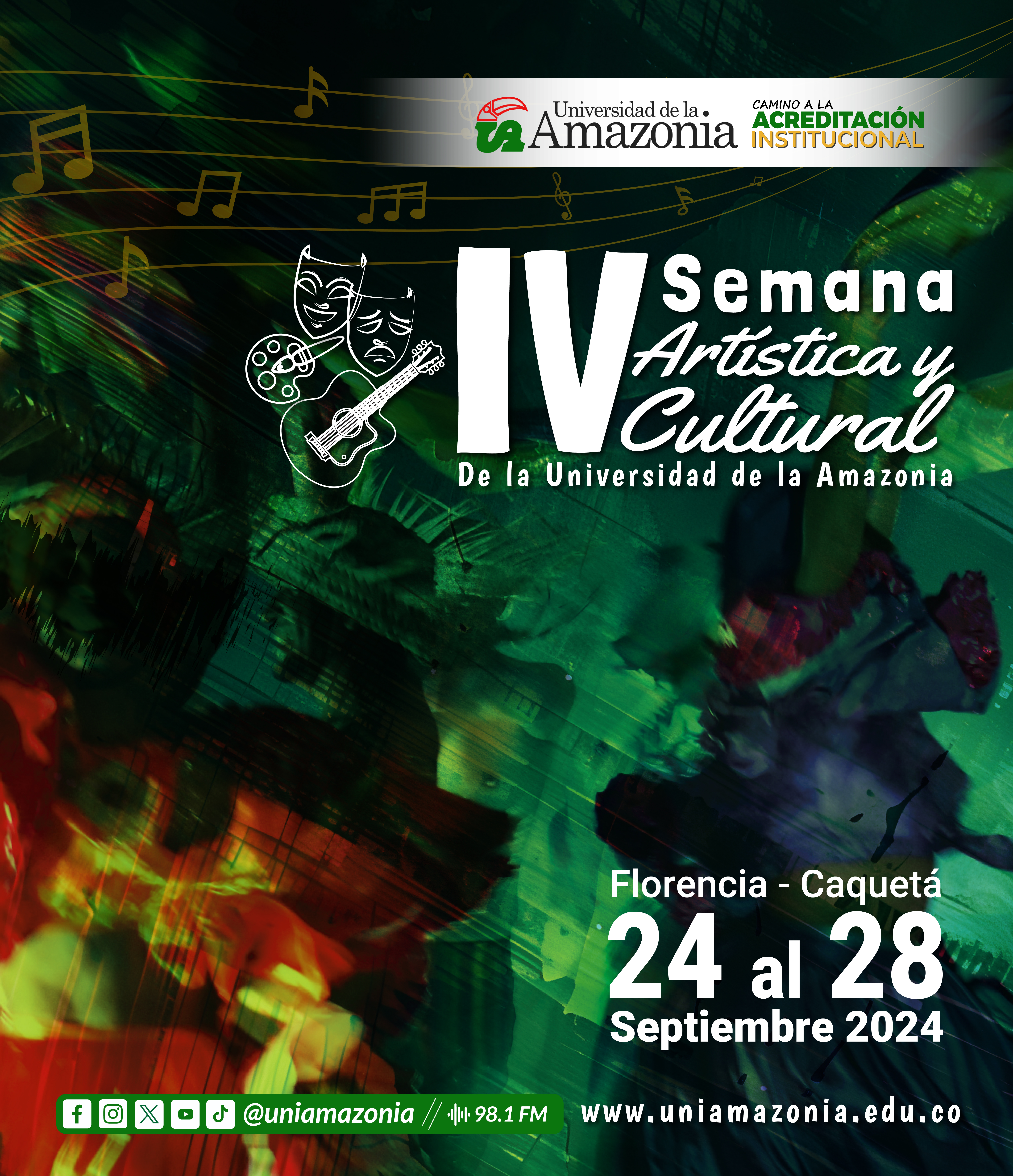 Del 24 al 28 de septiembre, la Universidad de la Amazonia se vestirá de arte, cultura y folclor en su 4ta Semana Artística y Cultural. Más de 200 artistas ocuparán los distintos escenarios dispuestos para la comunidad caqueteña, ofreciendo una variedad de presentaciones que incluyen: