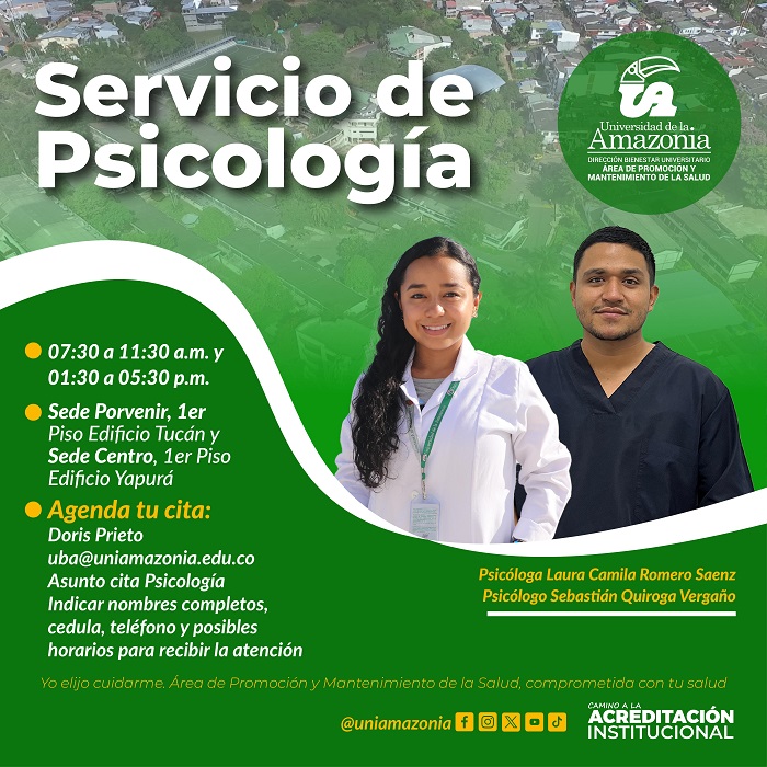 Recuerda que el área de Promoción y Mantenimiento de la Salud te ofrece acompañamiento psicológico. Estamos ubicados en la sede Centro y la sede Porvenir.