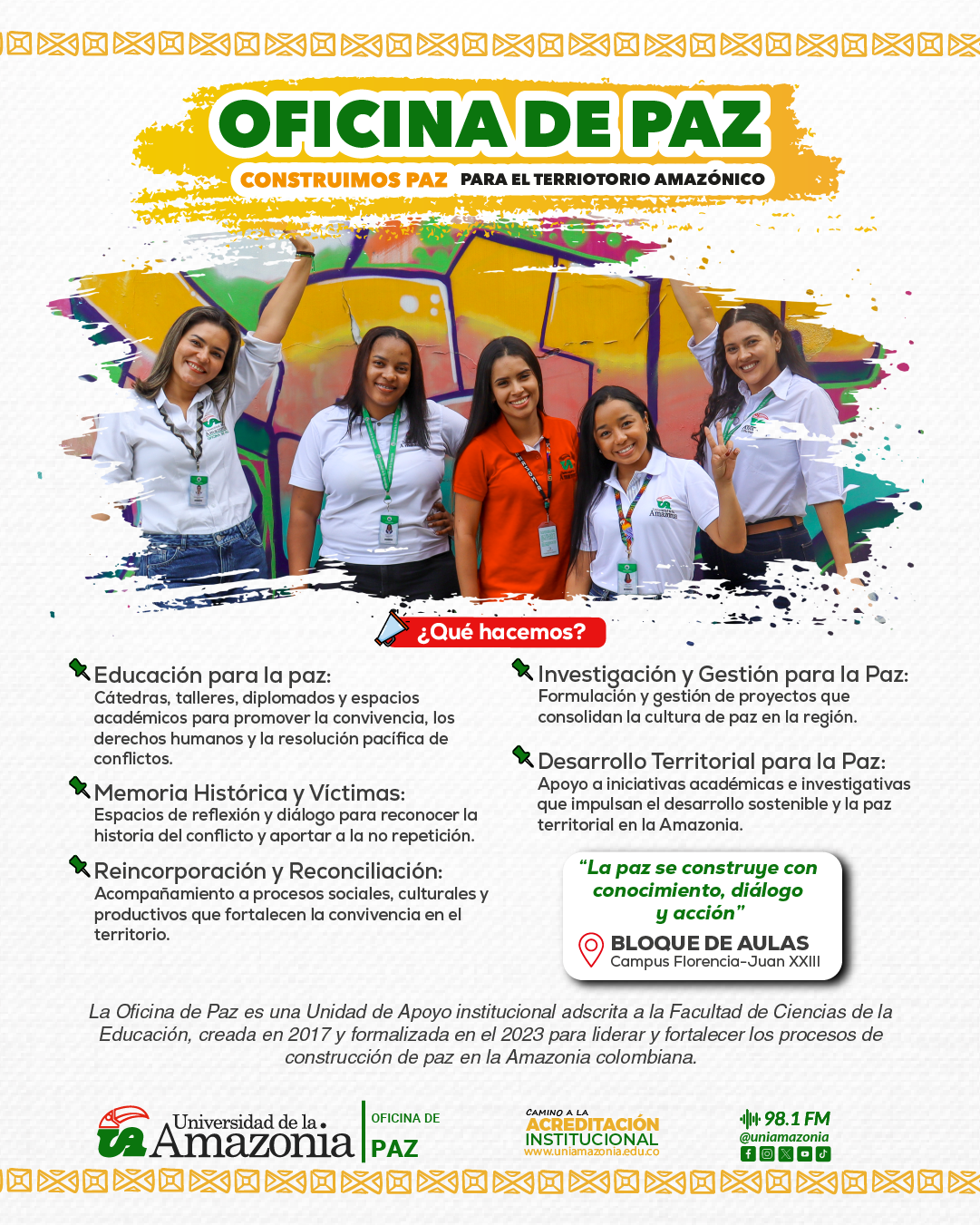 #OficinaDePaz #UniversidadDeLaAmazonia #ConstruimosPaz #Amazonía #EducaciónParaLaPaz #MemoriaHistórica #Territorio