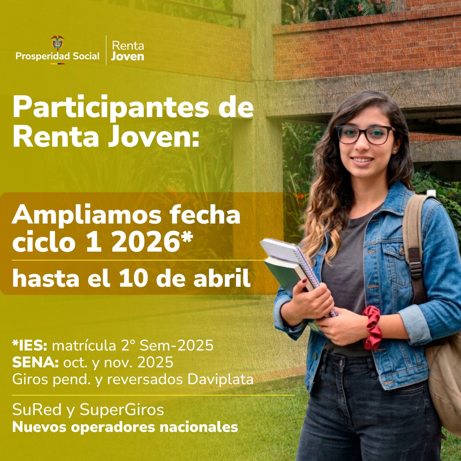 Ampliamos la fecha del Ciclo 1 de 2026 hasta el 10 de abril para estudiantes de IES de Matrícula 2025-2 y beneficiarios con giros pendientes o reversados en Daviplata.