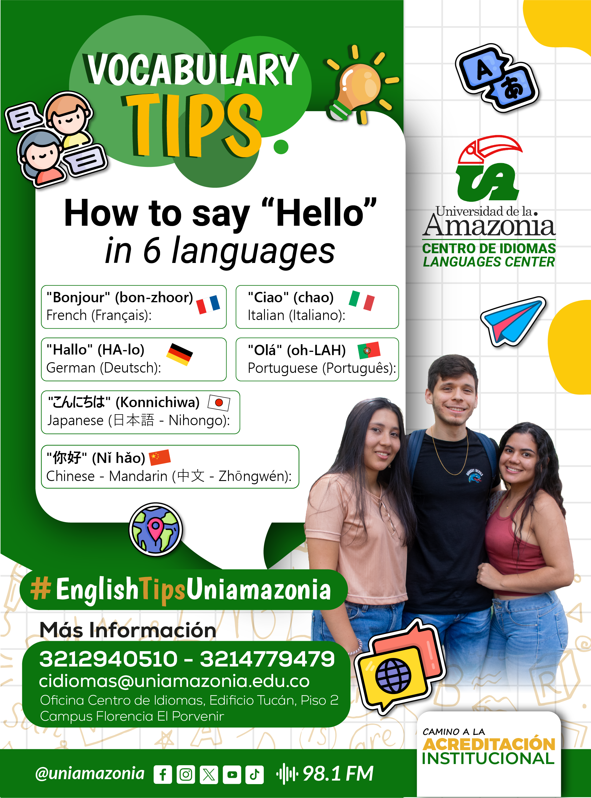 ? En el Centro de Idiomas de la Universidad de la Amazonia te ayudamos a llevar tu inglés (¡y más!) al siguiente nivel ?