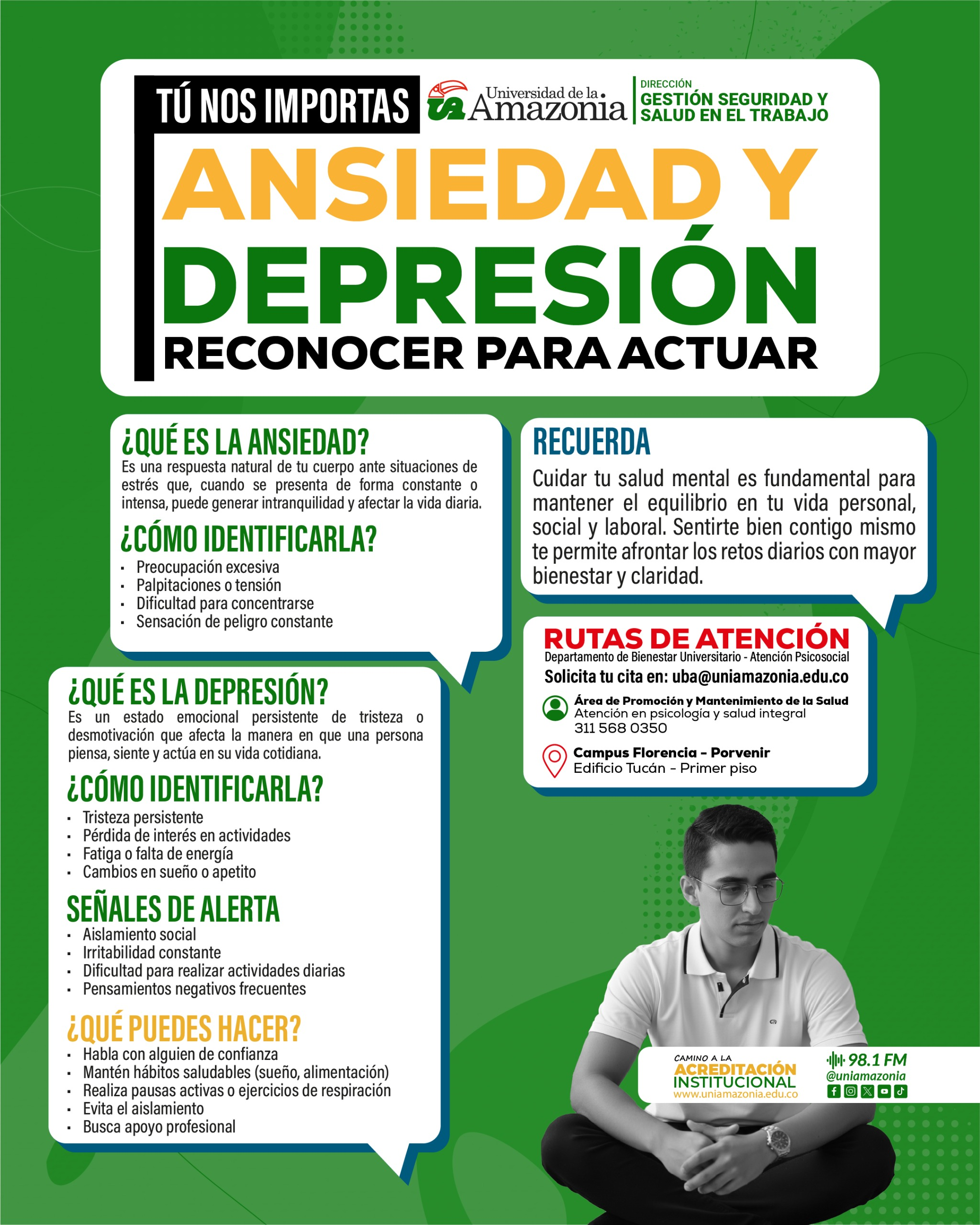La Universidad de la Amazonia, a través de la Oficina de Coordinación de Seguridad y Salud en el Trabajo, trabaja por entornos saludables, promoviendo la prevención de la ansiedad y la depresión en su comunidad universitaria.